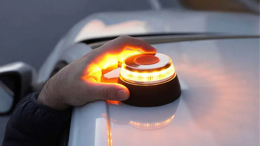La baliza V‑16 es un dispositivo luminoso que sirve para señalizar un vehículo averiado o detenido en carretera. A partir del 1 de enero de 2026, será obligatorio llevar una baliza V‑16 conectada en todos los vehículos, reemplazando los tradicionales triángulos de emergencia.